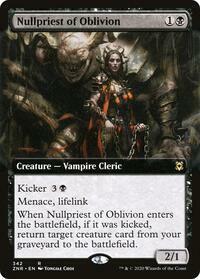 When Nullpriest of Oblivion enters the battlefield, if it was kicked, return target creature card from your graveyard to the battlefield.