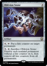 5, T, Sacrifice Oblivion Stone: Destroy each nonland permanent without a fate counter on it, then remove all fate counters from all permanents.