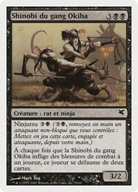Whenever Okiba-Gang Shinobi deals combat damage to a player, that player discards two cards.