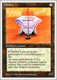 If Onulet is placed in the graveyard, its controller gains 2 life.