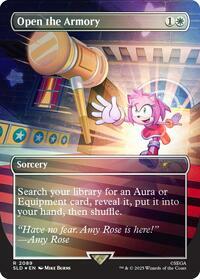 Search your library for an Aura or Equipment card, reveal it, put it into your hand, then shuffle your library.