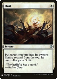 Put target creature into its owner's library second from the top. Its controller gains 3 life.