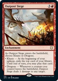 • Dragons — Whenever a creature you control leaves the battlefield, Outpost Siege deals 1 damage to any target.