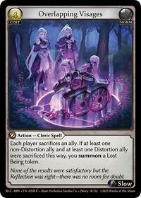 Each player sacrifices an ally. If at least one non-Distortion ally and at least one Distortion ally were sacrificed this way, you summon a Lost Being token.