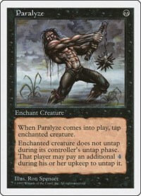 Enchanted creature does not untap during its controller’s untap phase. That player may pay an additional 4 during his or her upkeep to untap it.