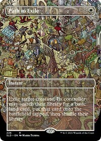 Exile target creature. Its controller may search their library for a basic land card, put that card onto the battlefield tapped, then shuffle their library.