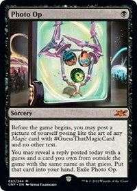 You may reveal a reply posted today with a guess and a card you own from outside the game with the same name as that guess. Put that card into your hand. Exile Photo Op.