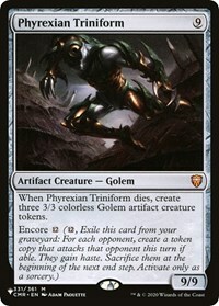 When Phyrexian Triniform dies, create three 3/3 colorless Golem artifact creature tokens.