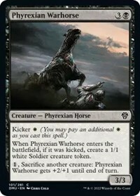 When Phyrexian Warhorse enters the battlefield, if it was kicked, create a 1/1 white Soldier creature token.
