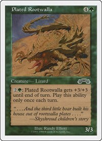 2G: Plated Rootwalla gets +3/+3 until end of turn. Play this ability only once each turn.