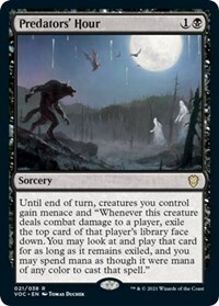 Until end of turn, creatures you control gain menace and "When this creature deals combat damage to a player, exile the top card of that player's library face down. You may look at and play that card for as long as it remains exiled, and you may spend mana as though it were mana of any color to cast that spell."