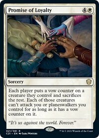 Each player puts a vow counter on a creature they control and sacrifices the rest. Each of those creatures can't attack you or a planeswalker you control for as long as it has a vow counter on it.