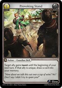 Target ally gains taunt until the beginning of your next turn. If that ally is unique, draw a card into your memory.