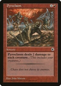 Pyroclasm deals 2 damage to each creature. (This includes your creatures.)