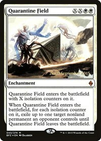 Quarantine Field enters the battlefield with X isolation counters on it.