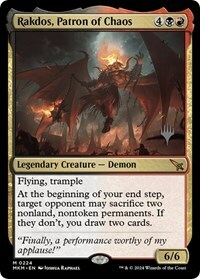 At the beginning of your end step, target opponent may sacrifice two nonland, nontoken permanents. If they don't, you draw two cards.