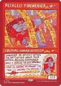 Whenever an artifact enters the battlefield under your control, Reckless Fireweaver deals 1 damage to each opponent.