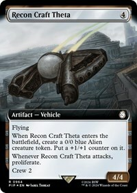 When Recon Craft Theta enters the battlefield, create a 0/0 blue Alien creature token. Put a +1/+1 counter on it.