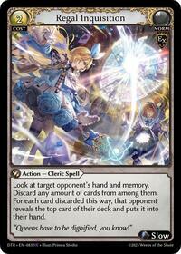 Look at target opponent's hand and memory. Discard any amount of cards from among them. For each card discarded this way, that opponent reveals the top card of their deck and puts it into their hand.