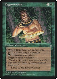When Regeneration comes into play, choose target creature.G: Regenerate creature Regeneration enchants.