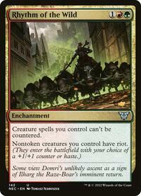 Nontoken creatures you control have riot. (They enter the battlefield with your choice of a +1/+1 counter or haste.)