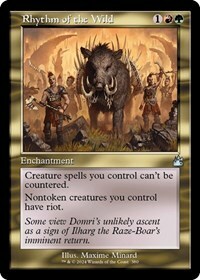 Nontoken creatures you control have riot. (They enter the battlefield with your choice of a +1/+1 counter or haste.)