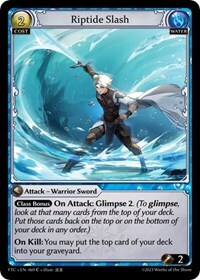[Class Bonus] On Attack: Glimpse 2. (To glimpse, look at that many cards from the top of your deck. Put those cards back on the top or on the bottom of your deck in any order.)