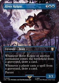 Whenever River Kelpie or another permanent enters the battlefield from a graveyard, draw a card.