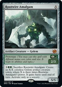 3GG, Sacrifice Rootwire Amalgam: Create an X/X colorless Golem artifact creature token, where X is three times Rootwire Amalgam's power. It gains haste until end of turn. Activate only as a sorcery.