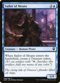 When Sailor of Means enters the battlefield, create a Treasure token. (It's an artifact with "T, Sacrifice this artifact: Add one mana of any color.")