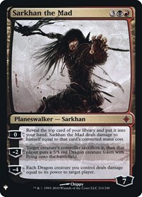 [0]: Reveal the top card of your library and put it into your hand. Sarkhan the Mad deals damage to himself equal to that card's converted mana cost.