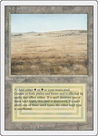 T: Add either W or G to your mana pool.Counts as both plains and forest and is affected by spells that affect either. If a spell destroys one of these land types, this card is destroyed; if a spell alters one of these land types, the other land type is unaffected.