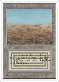 Counts as both plains and swamp and is affected by spells that affect either. Tap to add either W or B to your mana pool.