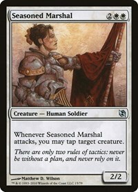 Whenever Seasoned Marshal attacks, you may tap target creature.