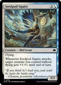 Whenever Seedpod Squire attacks, target creature you control without flying gets +1/+1 until end of turn.