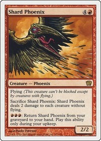 Flying (This creature can’t be blocked except by creatures with flying.) Sacrifice Shard Phoenix: Shard Phoenix deals 2 damage to each creature without flying. RRR: Return Shard Phoenix from your graveyard to your hand. Play this ability only during your upkeep.