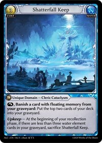 Upkeep — At the beginning of your recollection phase, if there are less than three water element cards in your graveyard, sacrifice Shatterfall Keep.