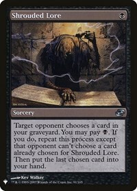Target opponent chooses a card in your graveyard. You may pay B. If you do, repeat this process except that opponent can't choose a card already chosen for Shrouded Lore. Then put the last chosen card into your hand.