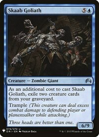 As an additional cost to cast Skaab Goliath, exile two creature cards from your graveyard.