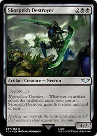Hyperphase Threshers — Whenever an artifact enters the battlefield under your control, Skorpekh Destroyer gains first strike until end of turn.
