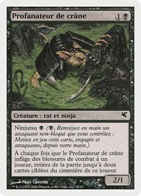 Whenever Skullsnatcher deals combat damage to a player, exile up to two target cards from that player’s graveyard.