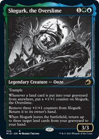 Whenever a land is put into your graveyard from anywhere, put a +1/+1 counter on Slogurk, the Overslime.