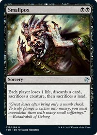 Each player loses 1 life, discards a card, sacrifices a creature, then sacrifices a land.