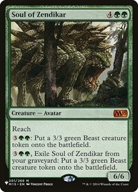 3GG, Exile Soul of Zendikar from your graveyard: Put a 3/3 green Beast creature token onto the battlefield.