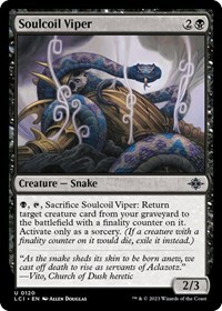 B, T, Sacrifice Soulcoil Viper: Return target creature card from your graveyard to the battlefield with a finality counter on it. Activate only as a sorcery. (If a creature with a finality counter on it would die, exile it instead.)