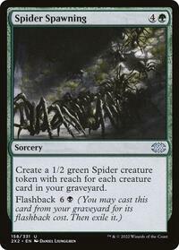 Create a 1/2 green Spider creature token with reach for each creature card in your graveyard.