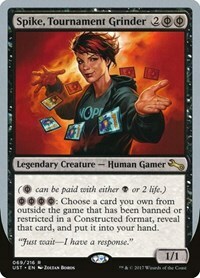 (B/P)(B/P)(B/P)(B/P): Choose a card you own from outside the game that has been banned or restricted in a Constructed format, reveal that card, and put it into your hand.