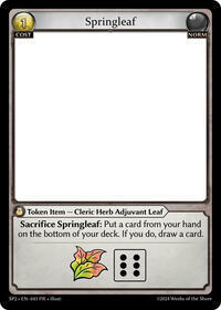 Sacrifice Springleaf: Put a card from your hand on the bottom of your deck. If you do, draw a card.