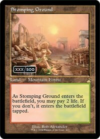 As Stomping Ground enters the battlefield, you may pay 2 life. If you don't, it enters the battlefield tapped.