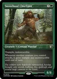 Whenever another creature you control attacks, it gains trample and indestructible until end of turn.